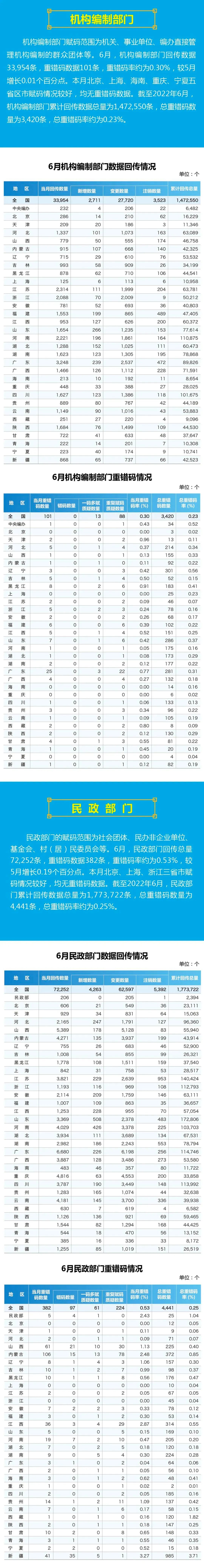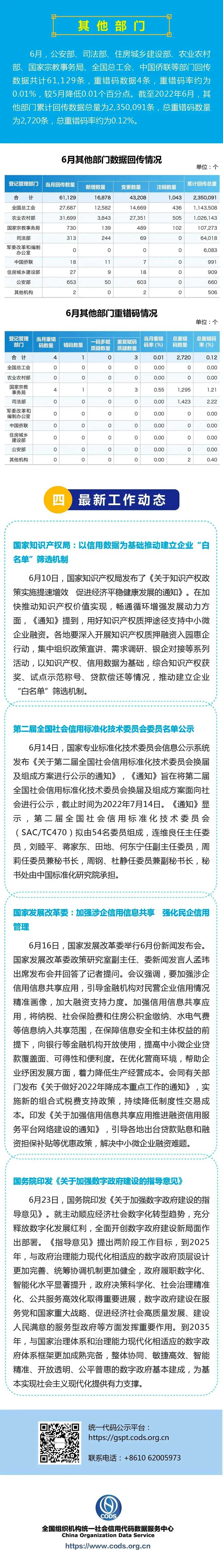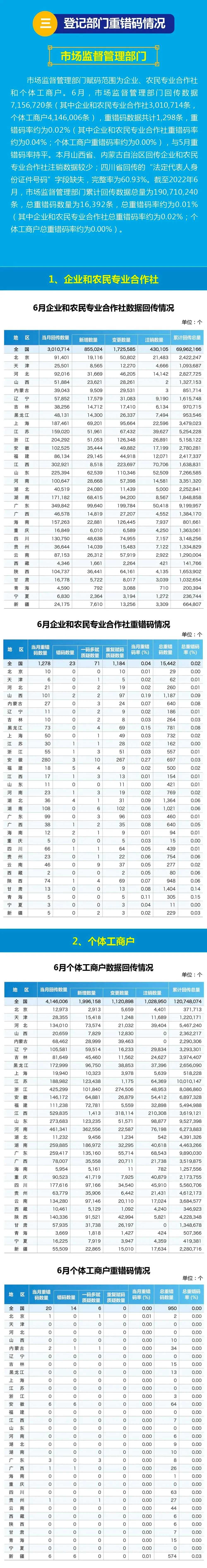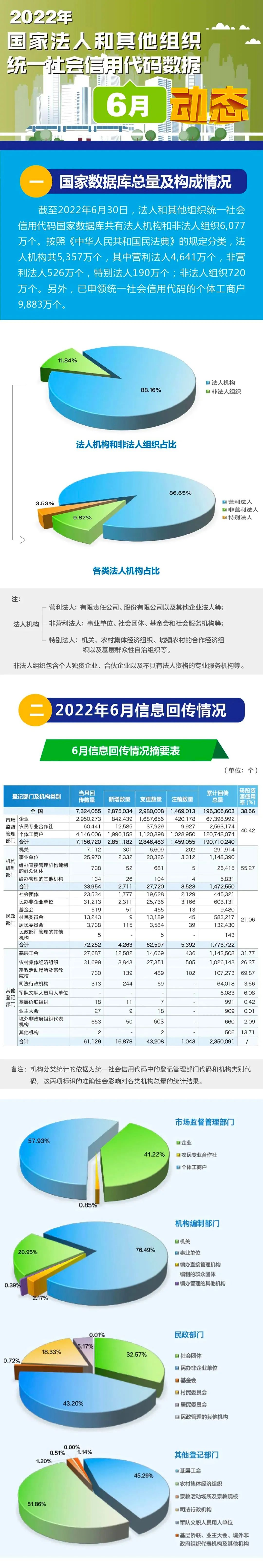 【图解】2022年国家法人和其他组织统一社会信用代码数据6月动态