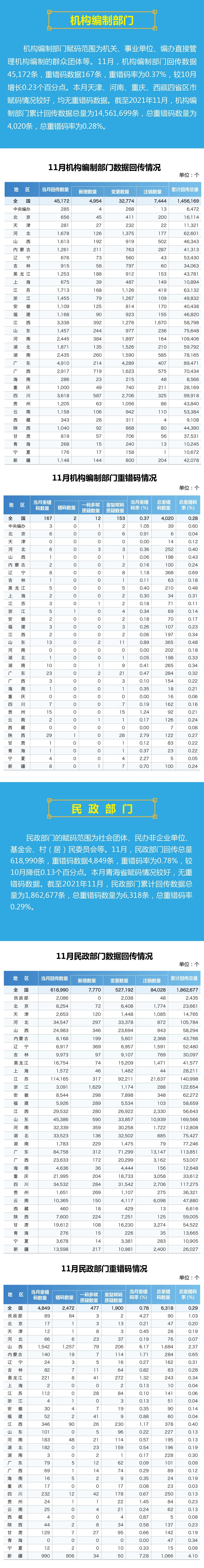【图解】2021年国家法人和其他组织统一社会信用代码数据11月动态