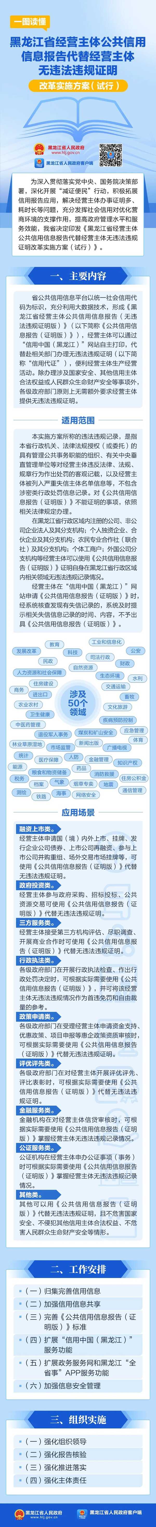 一图读懂《黑龙江省经营主体公共信用信息报告代替经营主体无违法违规证明改革实施方案(试行)》