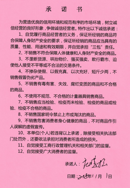 市场类信用承诺书